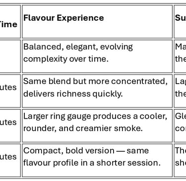 This shows that the size and shape of a cigar dramatically influence how the blend is experienced — same tobacco recipe, different journey.